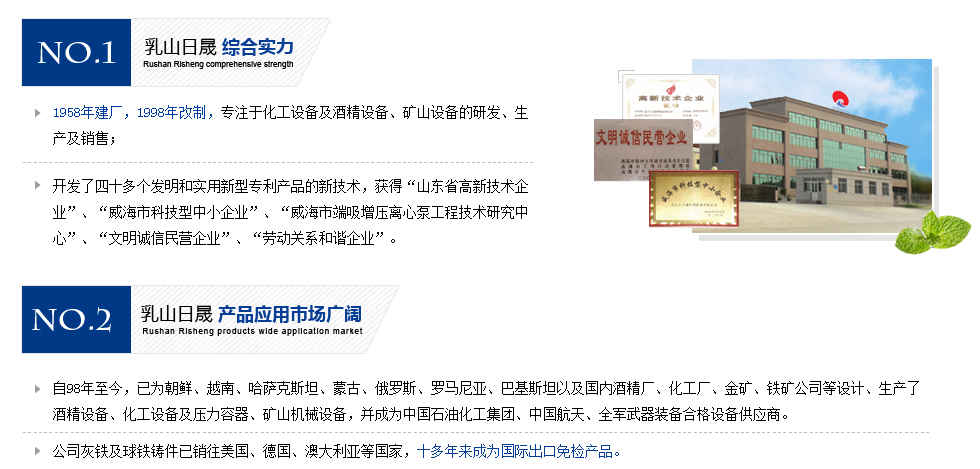 乳山市日晟機械制造有限公司位于山東省乳山市城區工業園日照路82號。公司地處膠東半島南端,東毗威海,北臨煙臺,西近青島,南瀕黃海,依山傍海,交通便利。公司于1958年建廠,原屬國家輕工部定點設備生產廠家,自1998年改制后,現有員工128人,其中工程技術人員26人,加工設備齊全,占地面積3萬平方米,是集鑄造生產、機械加...